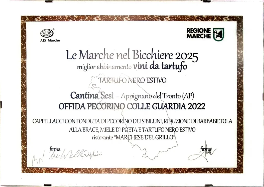Colle guardia 2022 premiato come miglior abbinamento e vino da tartufo nelle marche nel bicchiere 2025